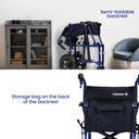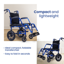 The Bobby Portable Wheelchair is a lightweight, foldable transfer chair designed to provide effortless mobility and convenience. Ideal for travel, hospitals, or everyday use, the Bobby features swing-away armrests, a foldable backrest, and removable footrests, making it easy to store and transport. Equipped with manual brakes and adjustable footplates, this chair offers both safety and comfort.