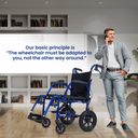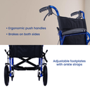 Manual Brakes for Safety: Features reliable manual brakes for the user and additional brakes for the caregiver, ensuring safety during use.