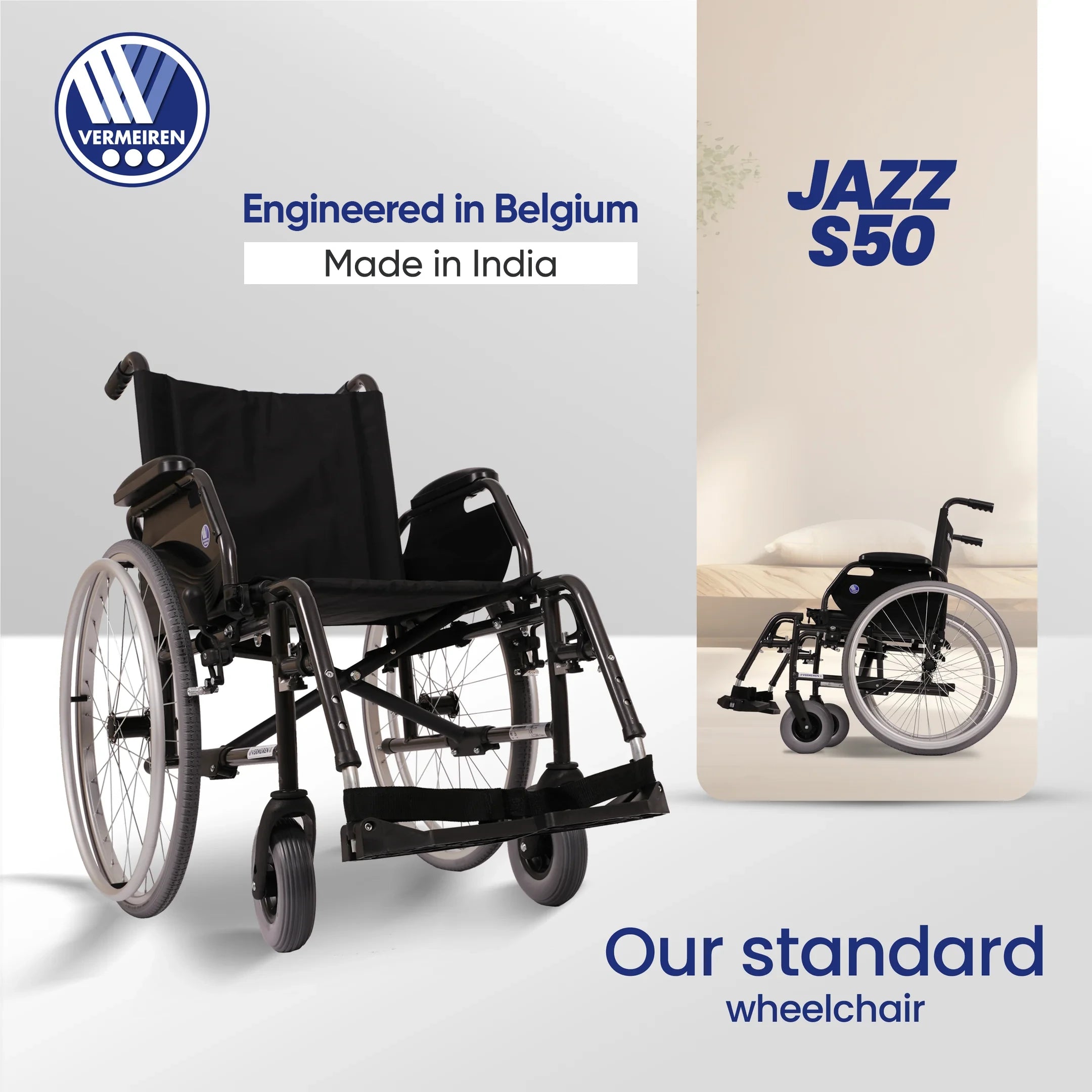 Built to European quality standards by VERMEIREN, a trusted name since 1957, the Jazz S50 promises lasting durability and personal comfort.