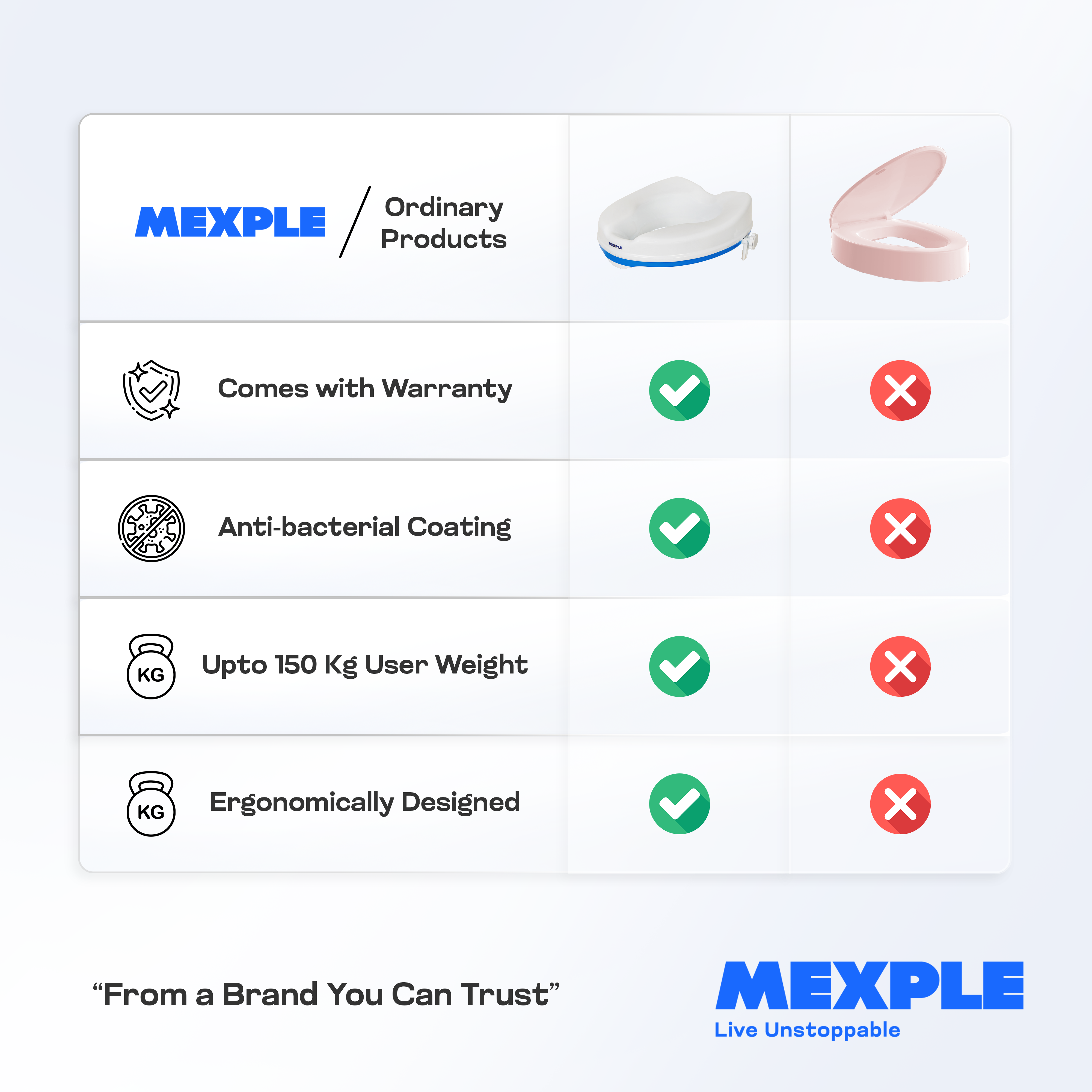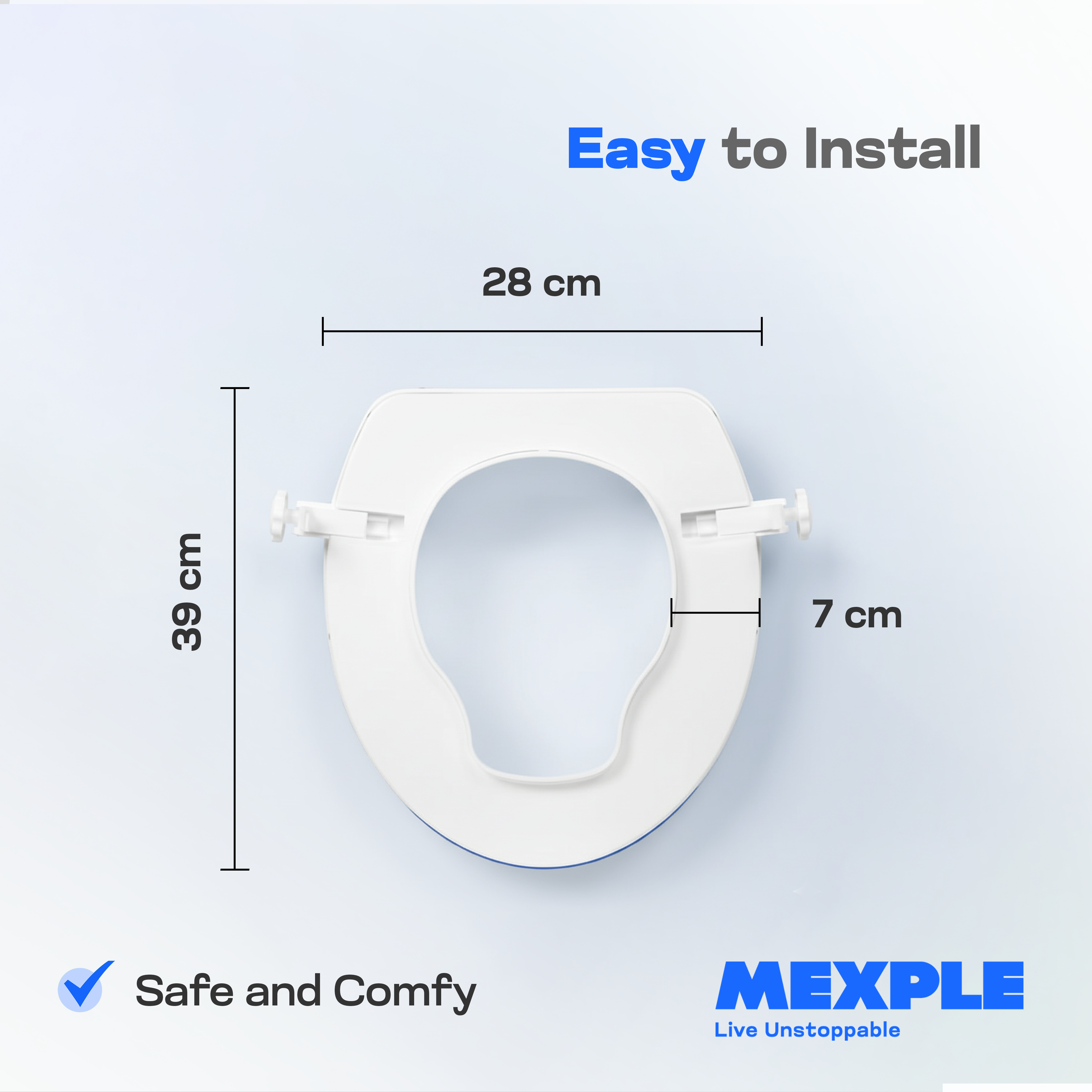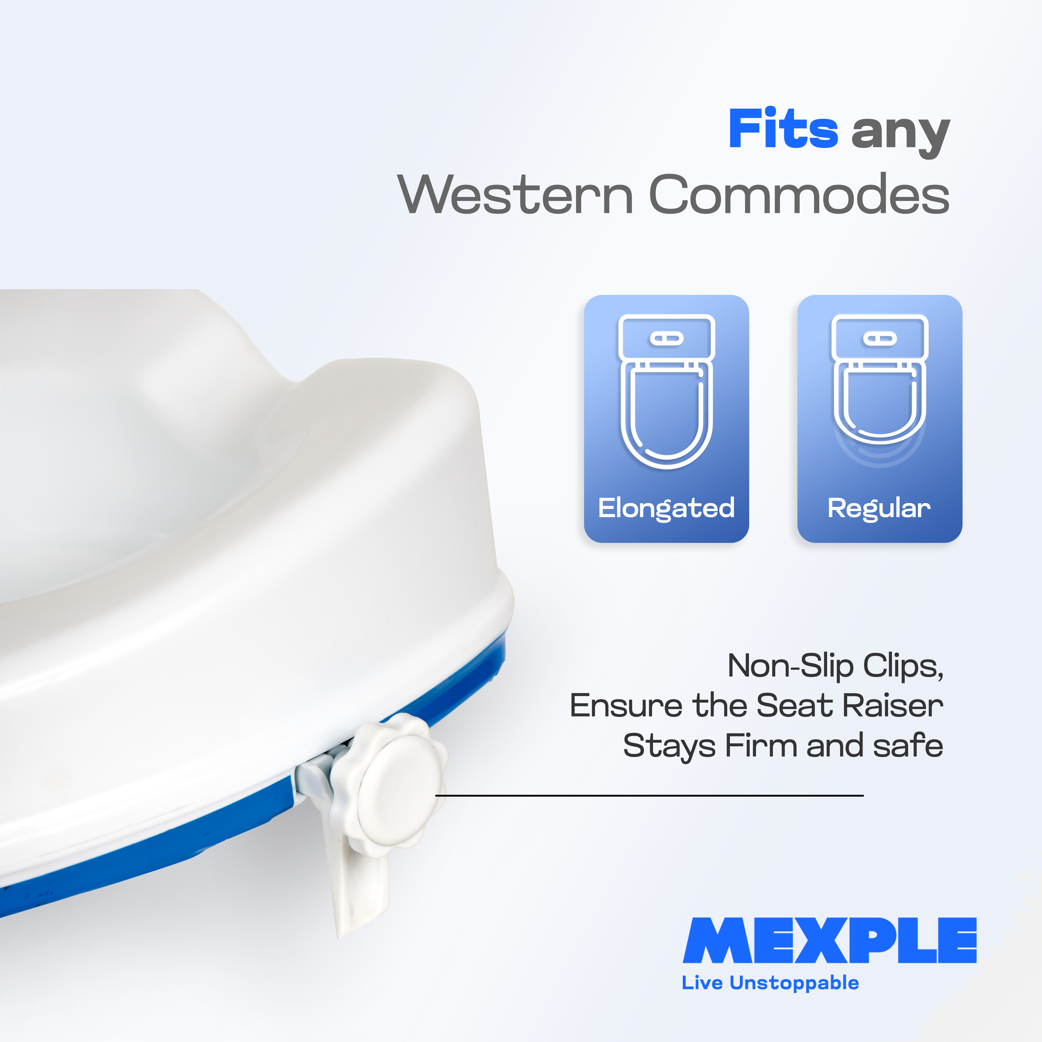 - ๐ฝ TOILET SEAT HEIGHT RAISER FOR COMFORT โ The MEXPLE RaiXer2 Raises the Height of Your Western Commode by 2 Inches, Making Sitting and Standing Easier for Elderly, Handicapped, and Knee Pain Patients.