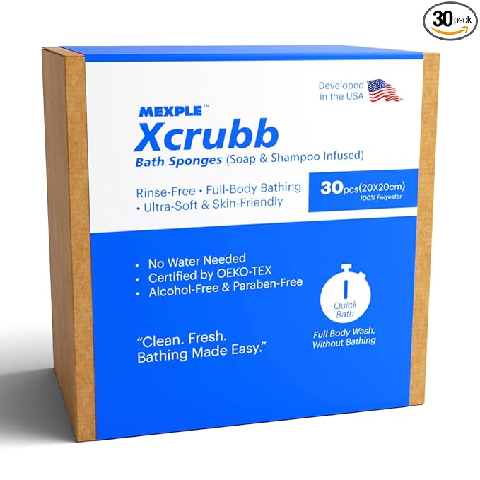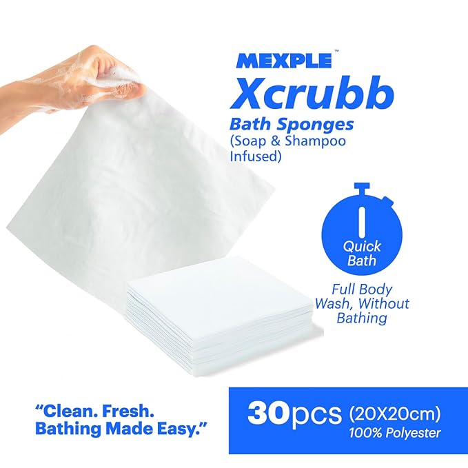 Xcrubb Disposable Rinse-Free Bathing Sponges, 30pcs