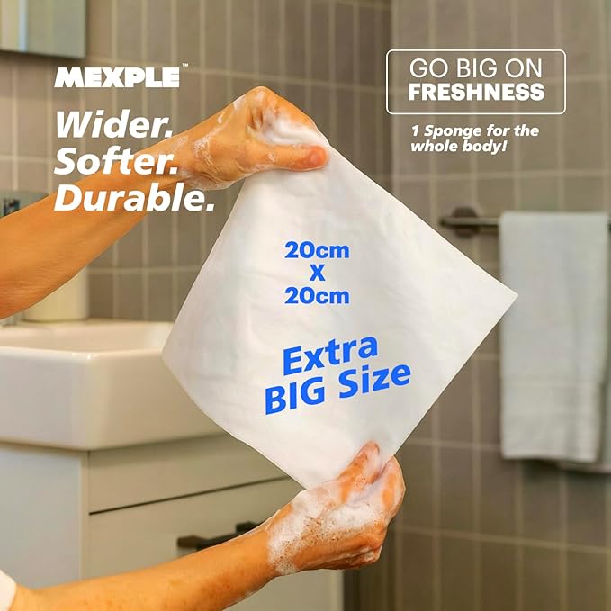 - 🚿 EXTRA-LARGE, THICK & DURABLE SPONGES: Superior size and strength for comfortable body cleansing; does not tear, even when fully soaked or squeezed.
